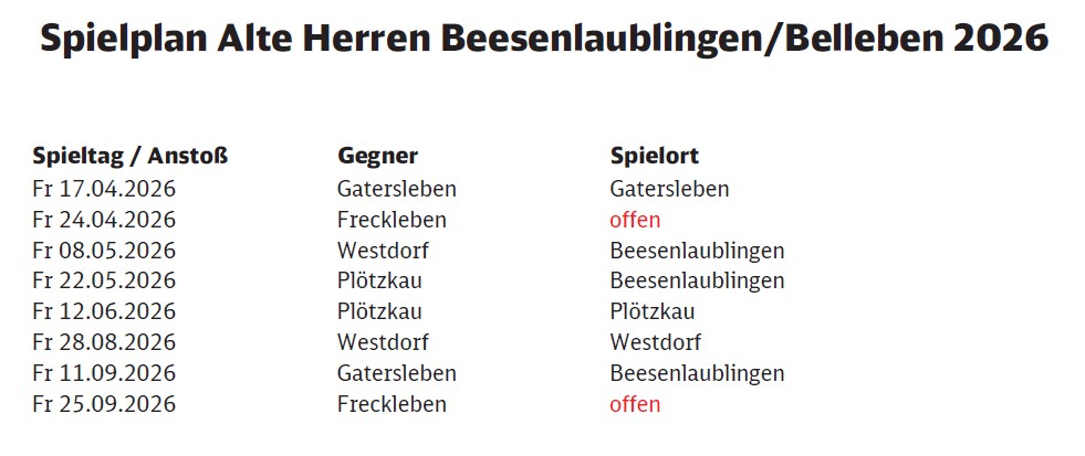 Im Sommer 2025 gründeten wir eine neue Altherren-Fußballmannschaft, die auch 2026 den Spielbetrieb in Form von Freundschaftsspielen weiterführen wird.